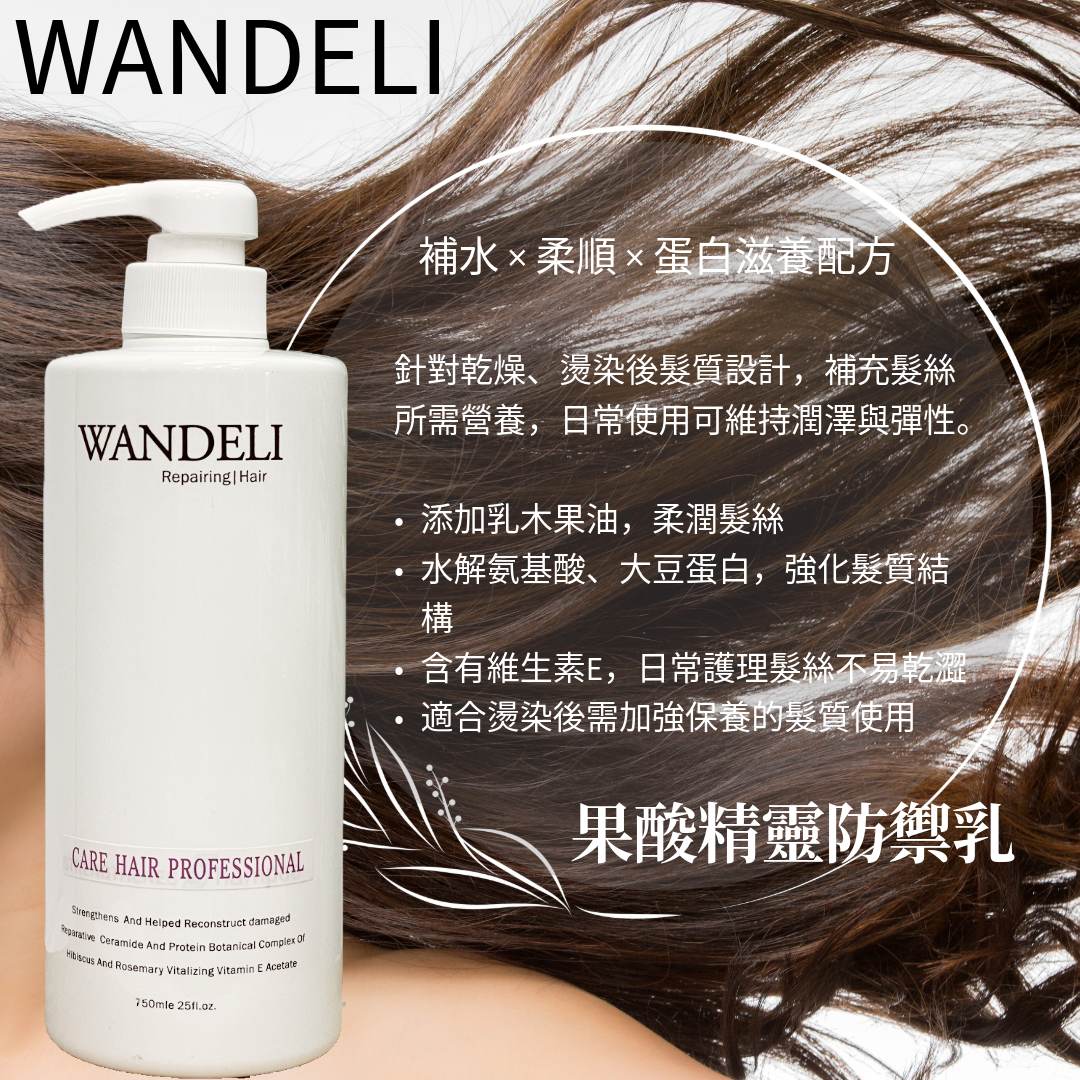 針對乾燥缺水、燙染後受損髮質設計,補充日常所需蛋白與滋潤成分,幫助維持柔順與光澤。